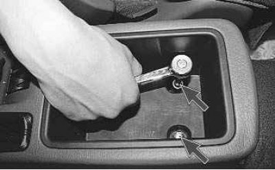 8. Снимая с рычагов привода стояночного тормоза и переключения передач декоративные кожухи...