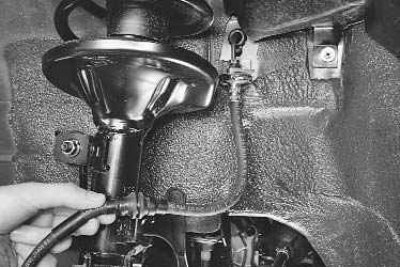 2. Выньте из кронштейна на телескопической стойке резиновый уплотнитель вместе со шлангом.