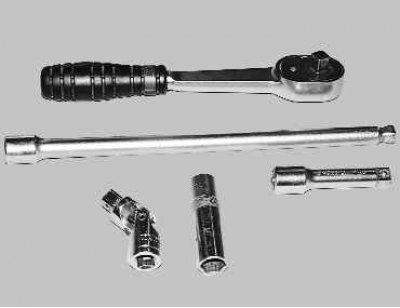 Примечание. Для отворачивания труднодоступных гаек крепления вакуумного усилителя вам потребуется набор торцовых головок, удлинителей и воротков, подобный изображенному на фото.