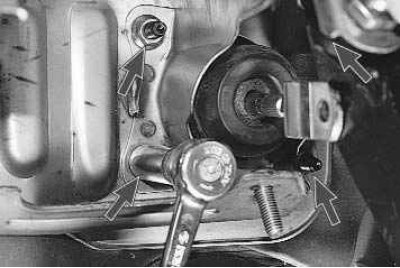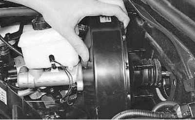 Примечание. При наличии у исполнителя достаточных навыков главный тормозной цилиндр можно не снимать полностью, достаточно отсоединить его от усилителя тормозов и отвести вперед, не отсоединяя от него трубопроводы.