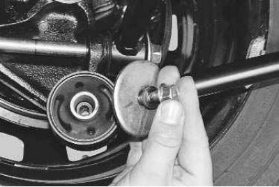 – после замены продольного рычага проверьте и при необходимости отрегулируйте углы установки задних колес (см. «Проверка и регулировка углов установки колес»).