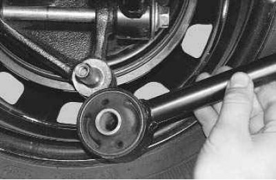 – окончательно затягивайте крепления продольного рычага к кулаку и кронштейну кузова только на автомобиле, стоящем на земле;