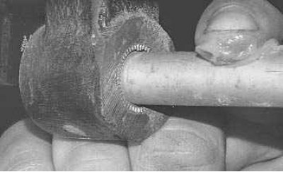 10. Внимательно осмотрите рычаг, деформированный рычаг замените. Признаками износа сайлентблоков являются разрывы, одностороннее выпучивание и отслоение резины от металлической втулки. Для замены сайлентблоков вам потребуются съемники подходящего размера.