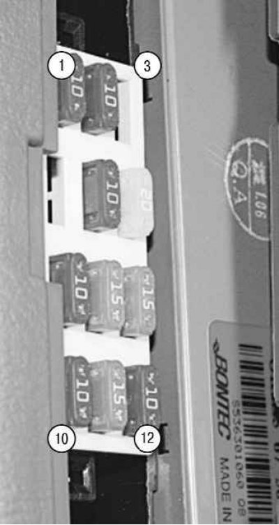 Рис. 10.2. Монтажный блок предохранителей, расположенный в салоне