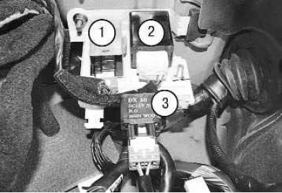 Рис. 10.3. Монтажный блок дополнительных реле в салоне: 1 – реле указателей поворота и аварийной сигнализации; 2 – реле системы центральной блокировки замков; 3 – реле противотуманных фар