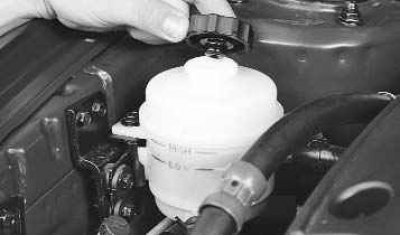 Примечание. Уровень рабочей жидкости в системе гидроусилителя рулевого управления проверяйте при работающем на холостом ходу двигателе.