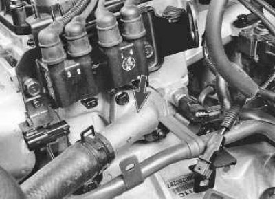 6. Двигатель может перегреться в случае выхода из строя термостата, который регулирует прохождение потока жидкости в системе охлаждения через радиатор или мимо него (для ускорения прогрева холодного двигателя). Для проверки термостата нужно на прогретом двигателе проверить на ощупь температуру шланга, соединяющего корпус термостата с радиатором. Если шланг холодный, термостат неисправен, циркуляции через радиатор нет.