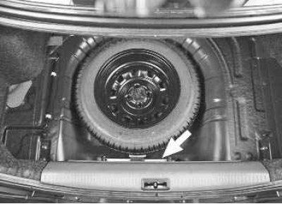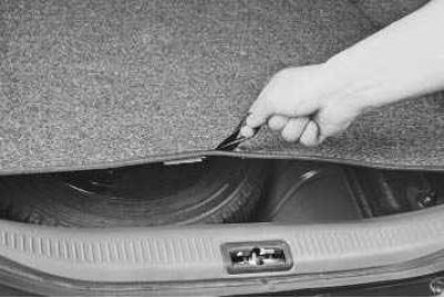 Сумка с ключом для гаек колес и комбинированная отвертка расположены в нише панели пола багажника под пластиковой обивкой.