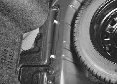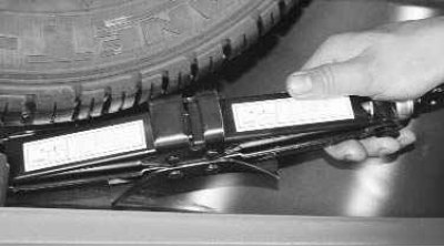 Примечание. При обратной укладке домкрата разожмите его в кронштейне, иначе во время движения он будет перемещаться в нише и издавать стук.