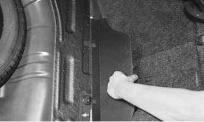 Домкрат закреплен в кронштейне панели багажника...