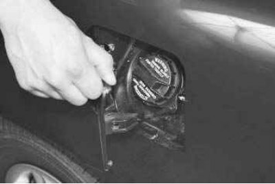 Внимание! Поскольку пары топлива могут создавать внутри бака повышенное давление, отворачивайте пробку наливной горловины медленно. Это позволит уравнять давление внутри бака с атмосферным давлением. Если вы заметите пар, выходящий из-под пробки, или услышите шипящий звук, то прекратите отворачивать пробку и подождите, пока эти явления не прекратятся. Иначе топливо может выплеснуться из бака.
