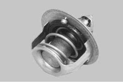 Термостат с твердым термочувствительным наполнителем поддерживает нормальную рабочую температуру охлаждающей жидкости и сокращает время прогрева двигателя. Термостат установлен в корпусе, закрепленном на головке блока цилиндров. При температуре охлаждающей жидкости до 82°C термостат полностью закрыт и жидкость циркулирует по малому контуру, минуя радиатор, что ускоряет прогрев двигателя. При температуре 82°C термостат начинает открываться, а при 95°C открывается полностью, обеспечивая циркуляцию жидкости через радиатор.