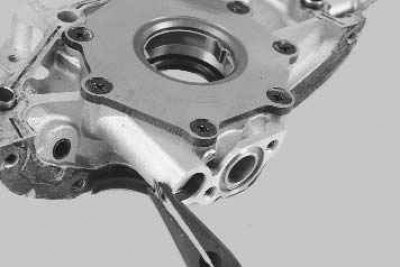 Примечание. Не обезжиривайте перед нанесением герметика привалочные поверхности блока и корпуса насоса, только тщательно удалите с них масло. Это обеспечит возможность легкой разборки соединения при необходимости в дальнейшем.