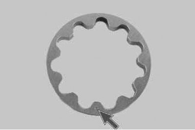 31. Измерьте зазор между зубьями внутренней и наружной шестерен масляного насоса. Номинальный зазор между зубьями внутренней и наружной шестерен масляного насоса – 0,376 мм.