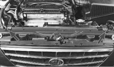 12. Аналогично демонтируйте вторую верхнюю опору радиатора.