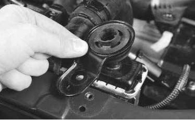 14. Осмотрите подушки верхних опор радиатора. Сильно деформированные или затвердевшие подушки замените.