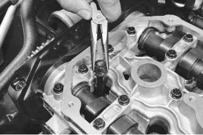 3. Снимите крышку головки блока цилиндров (см. «Замена прокладки крышки головки блока цилиндров»).