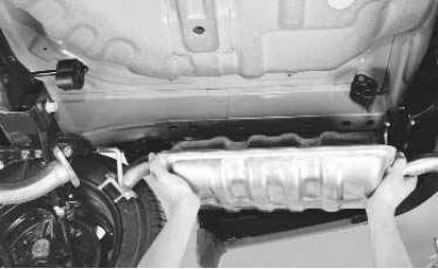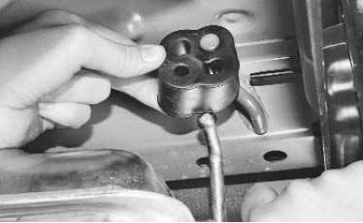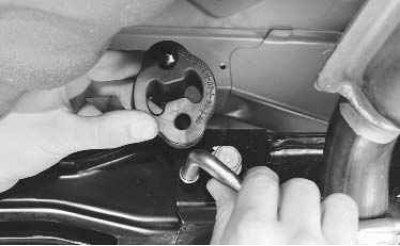 4. Придерживая основной глушитель, отсоедините от заднего кронштейна основного глушителя подушку...