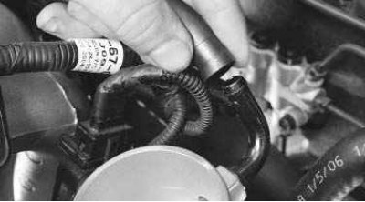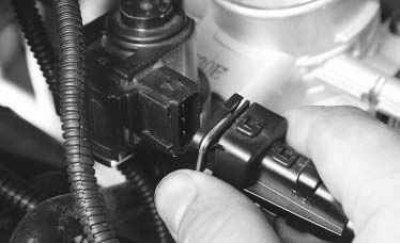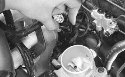 7. Аналогичным способом отсоедините колодку жгута проводов от датчика положения дроссельной заслонки.
