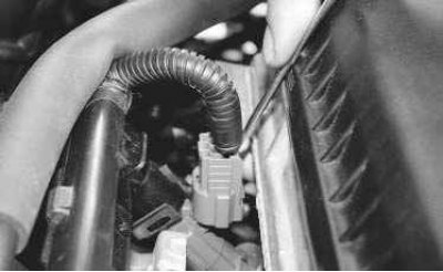 2. Отожмите отверткой фиксаторы крепления колодок жгутов проводов к форсункам двигателя...
