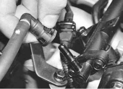 17. ...и снимите топливоподводящий штуцер топливной рампы.