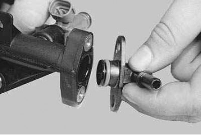 18. Замените уплотнительное кольцо топливоподводящего штуцера топливной рампы независимо от его состояния.
